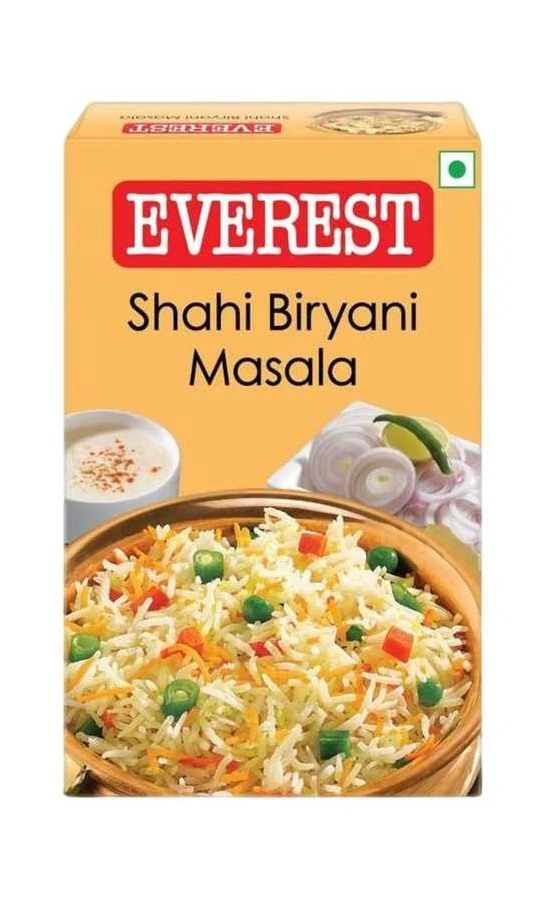 Everest biryani masala is a blend of spices that adds a beautiful aroma and richness to your rice dish. It is made using natural ingredients and no preservatives.