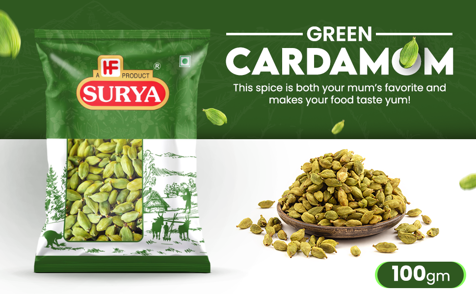 Discover the vibrant essence of Green Cardamom, a prized spice from the distinguished Surya Masale brand. Handpicked with utmost precision, these premium cardamom pods offer an unparalleled burst of aromatic splendour to your culinary creations. Sourced from the finest cardamom plants, each pod carries a symphony of flavours, combining notes of citrus, mint, and a subtle hint of sweetness. Surya Masale's unwavering commitment to quality ensures that every pod is carefully selected, preserving its freshness and capturing the essence of this beloved spice. With its versatile nature, Surya Green Cardamom is perfect for enhancing both savoury and sweet dishes, be it fragrant biryanis, rich curries, flavourful desserts, or refreshing teas. Elevate your culinary journey and embrace the authentic flavours that only Surya Masale can deliver. Immerse yourself in a world of culinary excellence with Surya Green Cardamom, where every pod tells a tale of quality, flavour, and sheer delight.